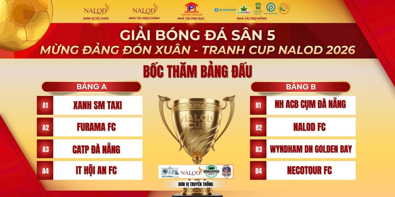 Chiều ngày 04/03/2025, tại Khách sạn Nalod, số 192 Võ Nguyên Giáp - Tp Đà Nẵng đã diễn ra buổi họp kỹ thuật và bốc thăm chia bảng giải bóng sân 5 Mừng Đảng Đón Xuân - Tranh Cúp Nalod 2026.